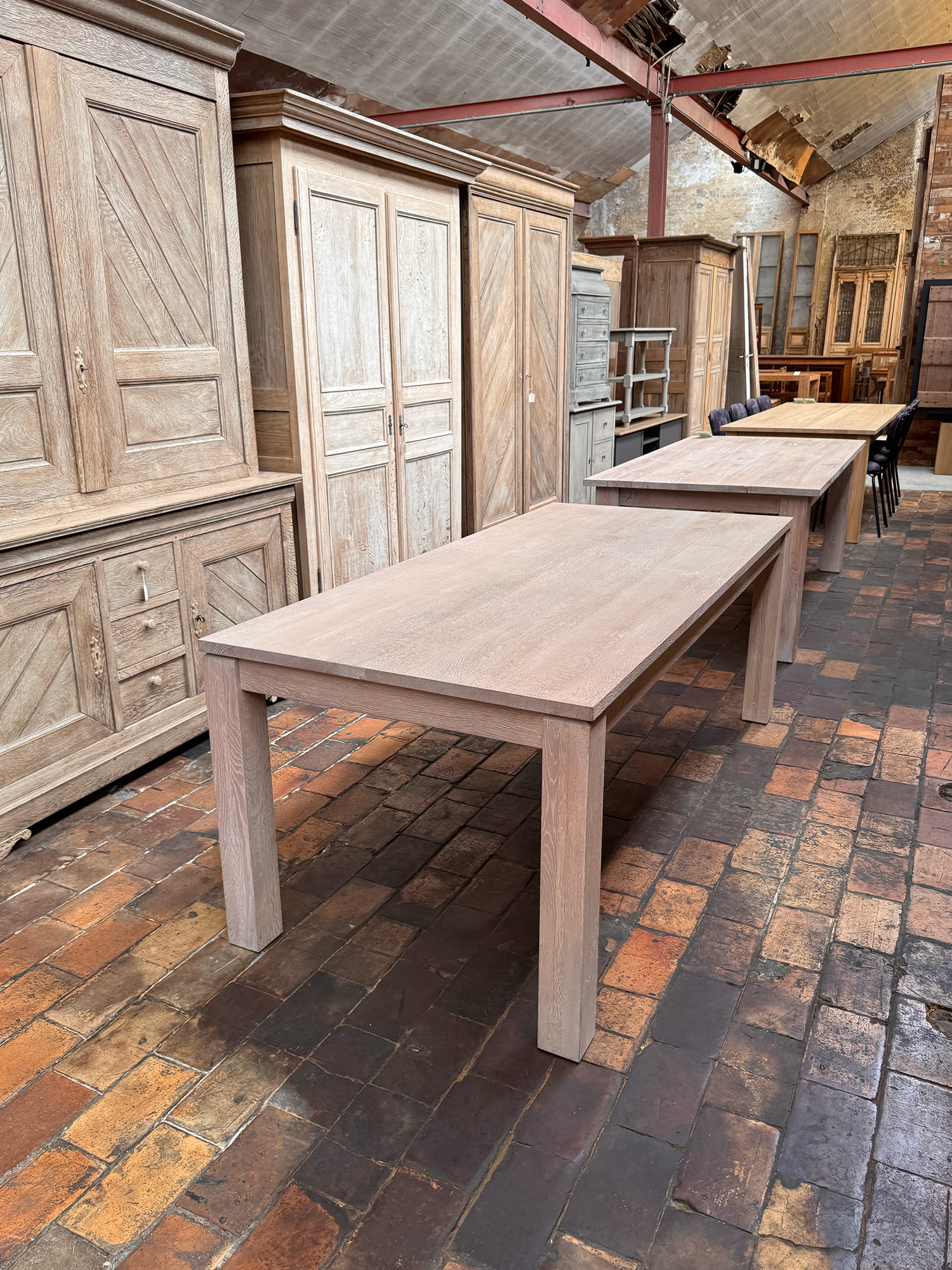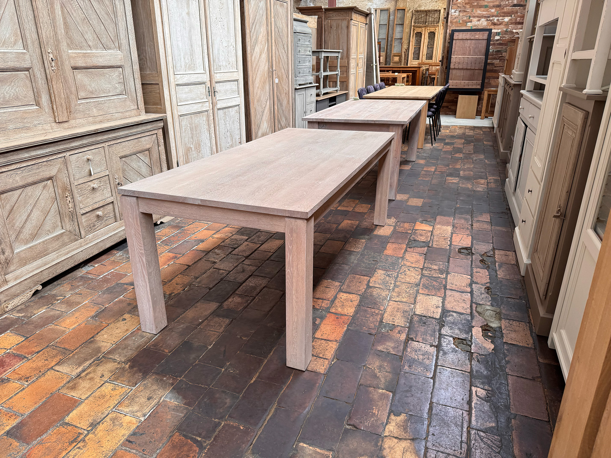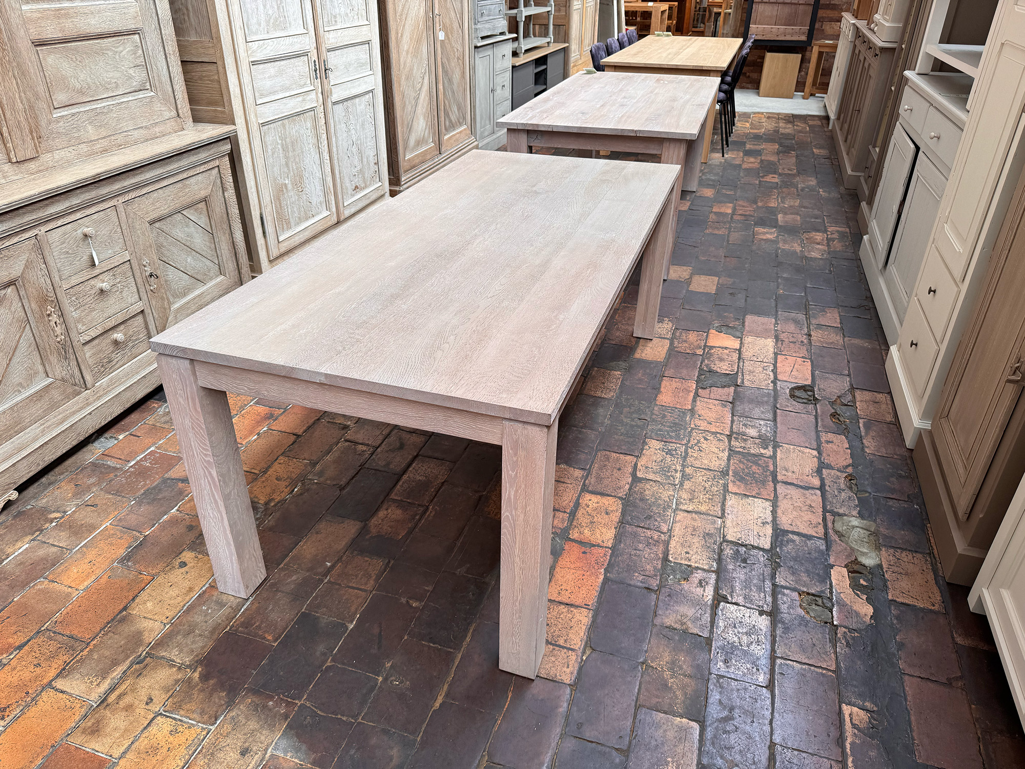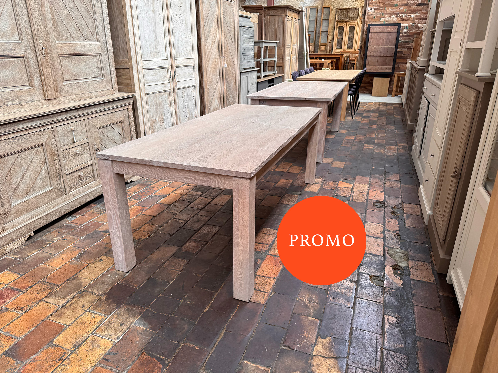 Nos tables sont traitées avec un vernis incolore qui les protège des taches d’eau, de vin, etc.